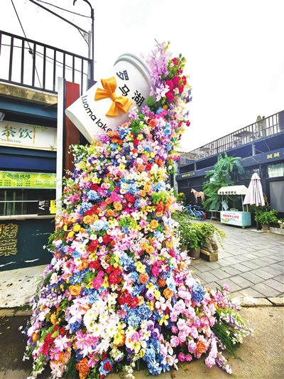 当夏日晚风掠过罗马湖的水面,沿岸的紫薇与绣球正编织着立体的色彩矩阵;商户门前的花箱里,时令花草舒展着枝叶;转角墙面上的彩绘勾勒出少年递花的剪影,澄澈的目光与湖面波光相映,定格成一幅无需翻译的浪漫画卷……在后沙峪镇,这场悄然发生的“微更新”,正以毫米级的匠心,将国际化休闲场景的基因注入湖畔肌理。