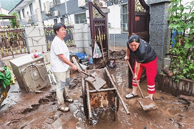 7月27日,许晓娜所在应急救援队接到任务,立即奔赴怀柔区琉璃庙镇安州坝村。到达现场后,她积极响应,投身到清理村民家周围淤泥等工作中,和大家一起为当地防汛工作筑牢防线。