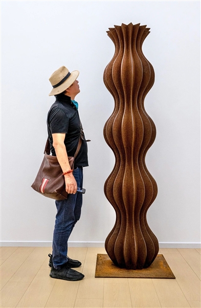 “故乡,不仅仅是一个地理上的概念、出生的地方,更是一种精神上的寄托和归宿,是我精神的家园。”苏新平说。他的作品极具个人色彩,用绘画语言讲述着对人文和自然的思考。霍伯特·梅勒则通过垂直向度的构成体系,发展出具有空间可调节性的雕塑语言,将耐候钢雕塑呈现的硬质边棱转化为柔韧曲线。这些雕塑作品有的类同植物生长的形态,有的呼应人体曲线、建筑构造或技术美学的理性秩序。