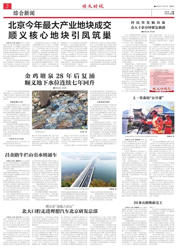 金鸡塘泉28年后复涌 顺义地下水位连续七年回升